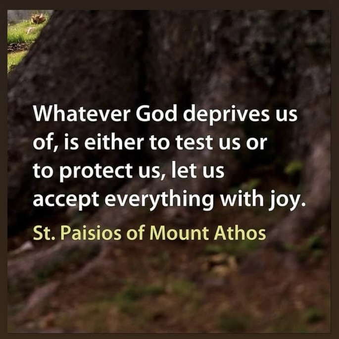 “Whatever God deprives us of, is either to test us or to protect us, let us accept everything with joy.” +St Paisios of Mount Athos
